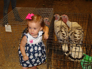 WELL..we decided to put her on a little car ride. She LOVED it. I almost started to cry but pulled it together. She has the biggest smile and screamed "HI DADDY HI DADDY" every time she came by us. Everyone thought she was so cute. I of course agree. She didn't want to get off. I tried to video on my camera but I guess I need to work on the video part because it didn't work and I was disappointed. I wish you could've seen her reaction to her first fair ride!